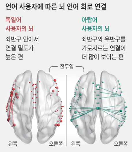 언어가 사람의 뇌 구조까지 바꿔 문법 복잡한 독일어 사용자 뇌 좌반구에서 연결성 강화 문맥 따라 발음 다른 아랍어 쓰면 좌반구·우반구 간 연결성 강해져